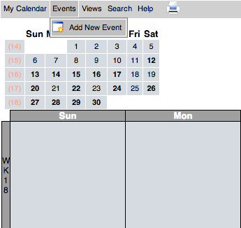 In the upper left hand corner of your browser window, hover over the word "Events". A Drop down menu will appear. Click "Add New Event".